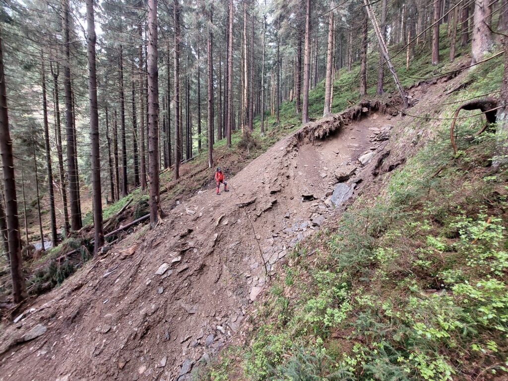 Přibližovací linky, lanovkové průseky a pospádové pojezdy urychlují odtok vody a vznikají hluboké erozní rýhy. Urychlený odtok má za následek i rychlejší kulminaci povodňových vln.